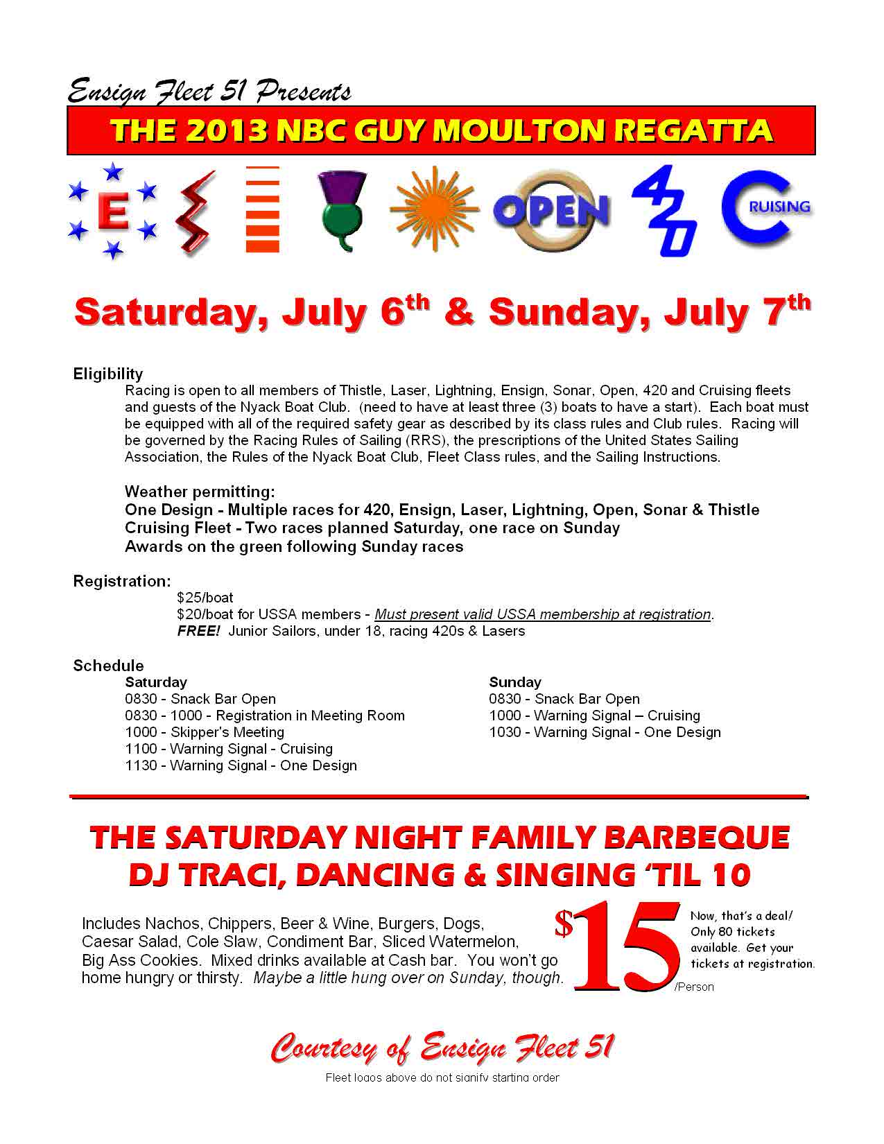 Come join the festivities for the GUY MOULTON regatta on July 7th weekend.