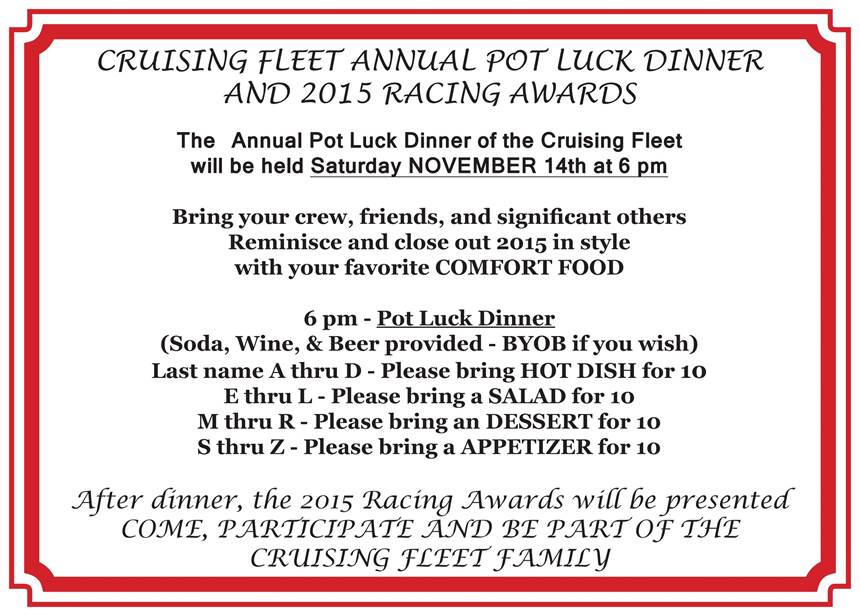 Attached are the Cruising Fleet racing results for 2015. We hope we did