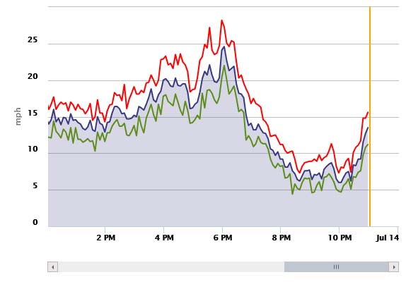 southerly blew all day, increasing to 20 -25 mph just before the start of